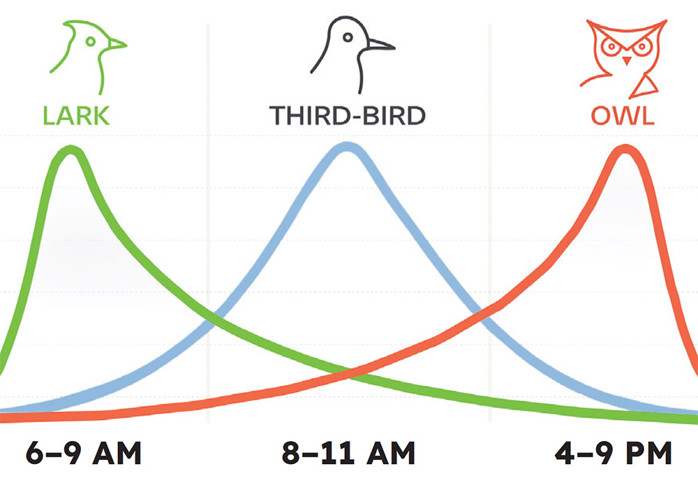 Maximize deep work efficiency by scheduling tasks according to individual chronotypes (Lark, Third Bird, Owl) and peak cognitive states.